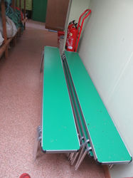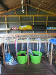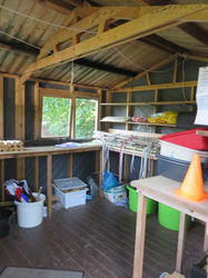 The equipment store, where all the tents are, runs the whole length of the building. All of the equipment can be used at no additional charge. We just ask that you replace it as you find it. You can find a list of what's in the Tent store below.
